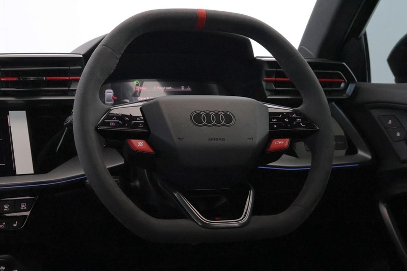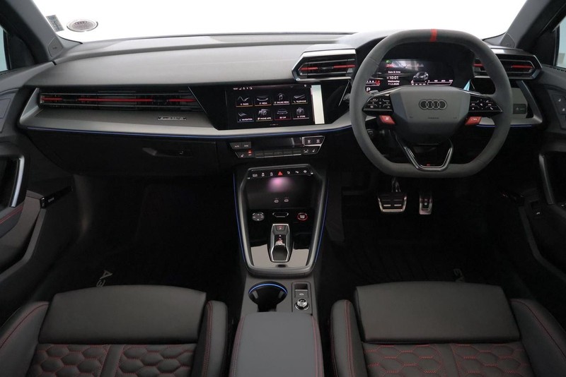 Powered by a 2.5 TFSI petrol engine delivering 400 Hp, this Audi RS3 combines impressive performance with fuel efficiency, consuming just 9.1 L/100km. The semi-automatic S tronic transmission ensures smooth gear shifts, while the spacious four-door, five-seat layout provides practicality for everyday use.