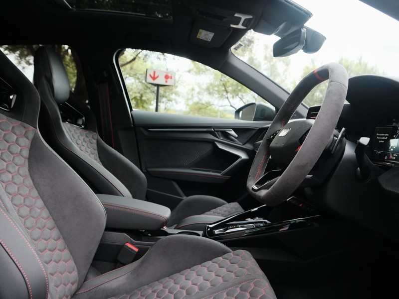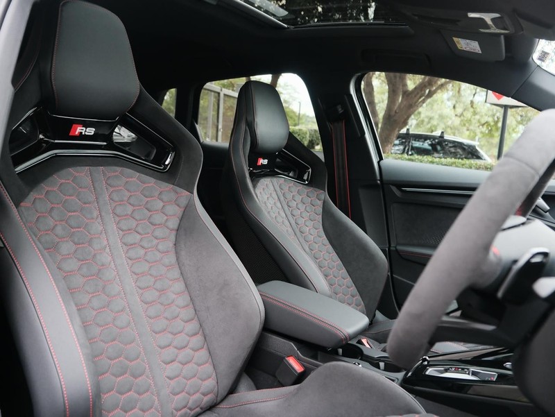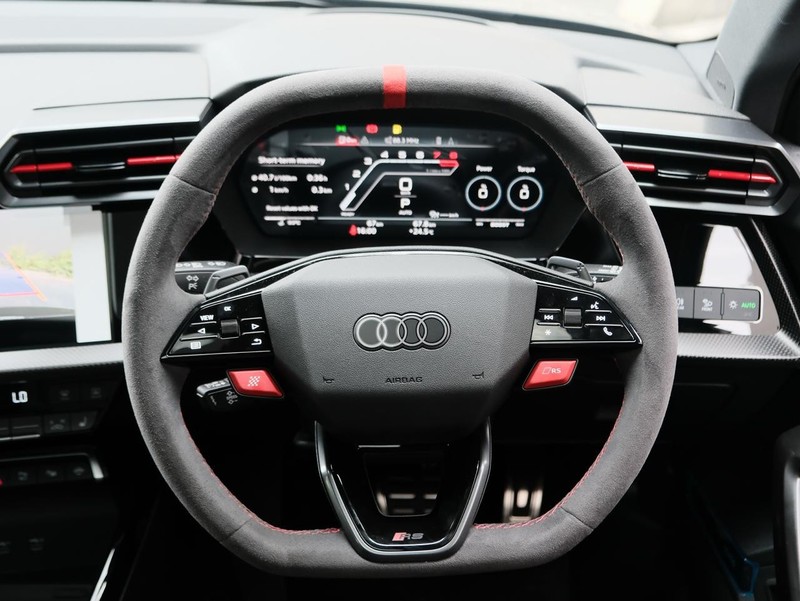 Powered by a 2.5 TFSI petrol engine boasting 400 Hp, the RS3 delivers exhilarating performance while maintaining impressive fuel efficiency at 9.1 L/100km. Its semi-automatic transmission ensures smooth gear shifts, enhancing driving comfort. The vehicle comfortably seats five passengers across four doors, making it practical for daily commuting and family outings.