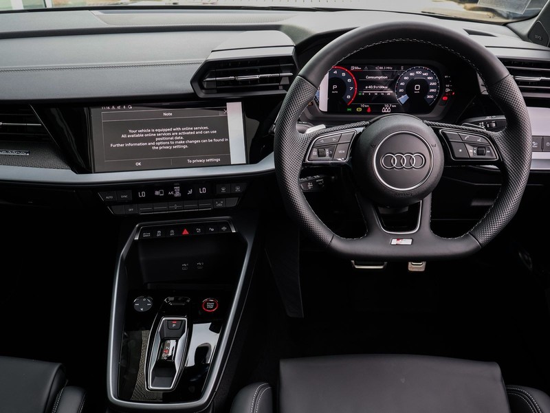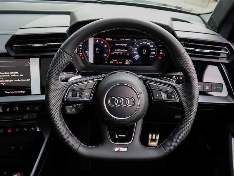 Powered by a 2.0 TFSI petrol engine delivering 333 Hp, this Audi S3 provides exhilarating performance with semi-automatic transmission and quattro all-wheel drive. Its fuel efficiency of 8.4 L/100km makes it practical for daily commuting. The hatchback boasts five seats and five doors, offering spacious comfort and versatility for family or leisure use.