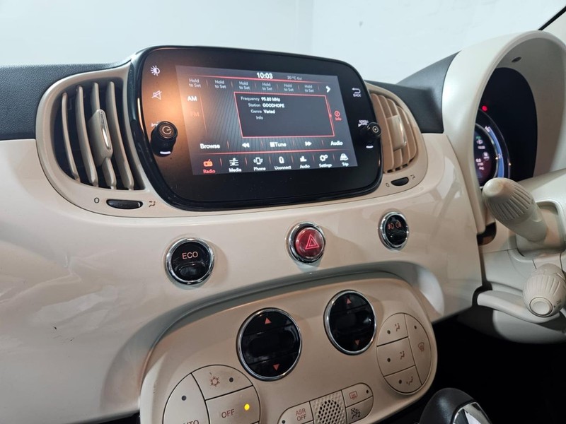Powered by a 1.0L mild hybrid petrol engine with 70 Hp, this Fiat 500 features automatic transmission for smooth driving. Its impressive fuel consumption of just 3.9 L/100km ensures cost-effective travel, while the practical layout includes four seats, three doors, and a compact body ideal for navigating busy streets.