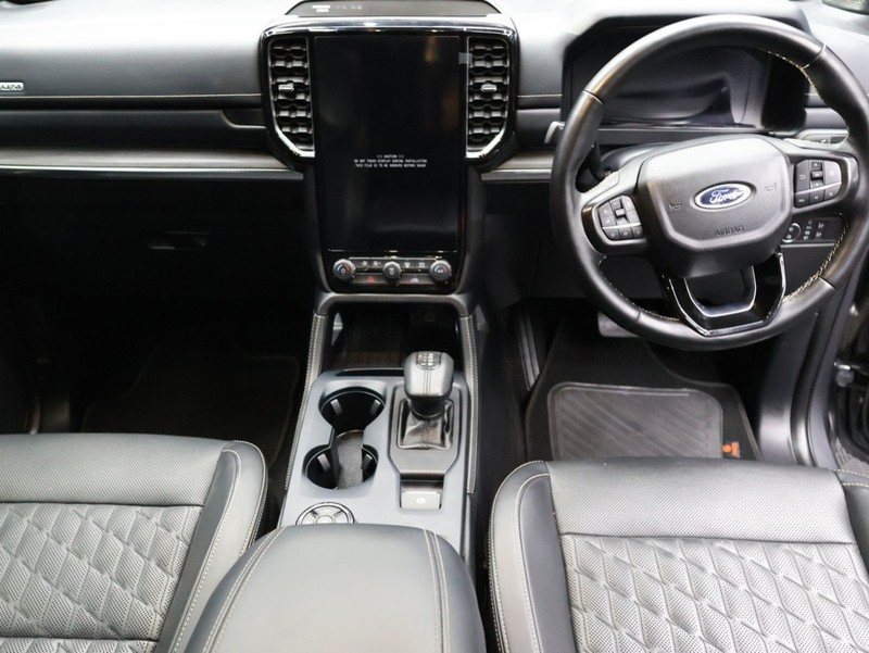 Powered by a robust 3.0 EcoBlue V6 diesel engine producing 240 Hp, it features an automatic transmission and e-4WD for enhanced off-road capability. The fuel efficiency is impressive for its size, averaging 10 L/100km, while offering five comfortable seats and four doors for practicality. The Platinum trim ensures premium comfort and convenience.