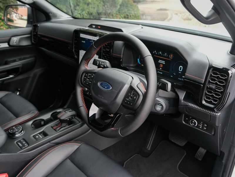 Powered by a robust 3.0 EcoBlue V6 diesel engine producing 240 Hp, this Ford Ranger combines impressive torque with fuel efficiency, consuming just 10 L/100km. The automatic transmission and e-4WD system deliver smooth handling across diverse terrains. With five seats, four doors, and a spacious double cab body, it offers practicality and comfort for work or leisure.