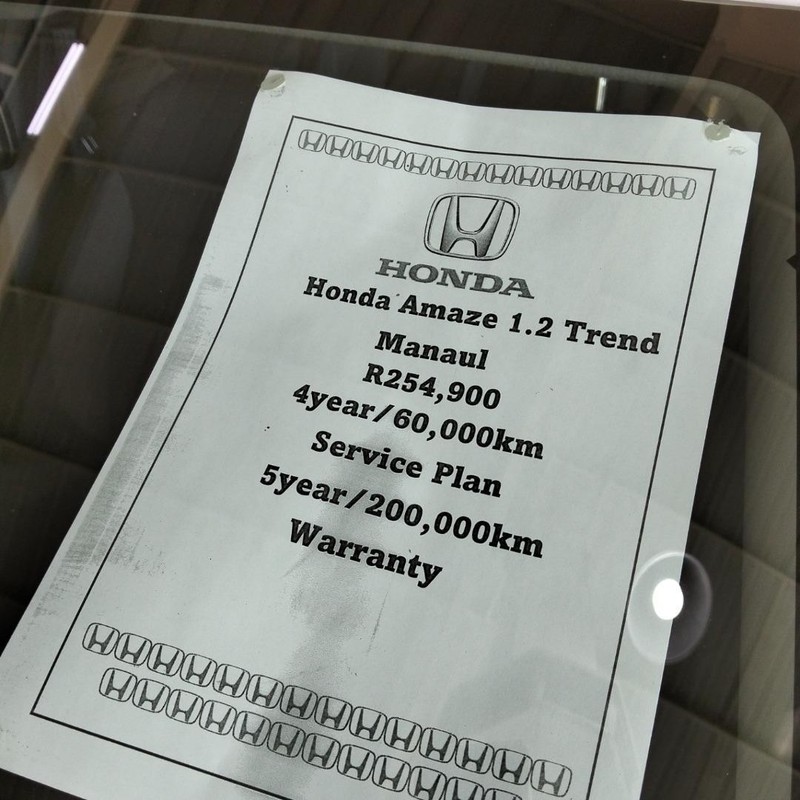 Available for sale in South Africa, the Honda Amaze is positioned as a compact sedan, competing with models like the Toyota Etios and Nissan Almera. The Amaze offers a choice of petrol engines, including a 1.2L and a 1.5L variant, paired with either a 5-speed manual gearbox or a continuously variable transmission (CVT). This model is particularly noted for its fuel efficiency and practicality in urban environments, appealing to South African buyers in search of an economical daily driver. Popular trims include the Amaze 1.2 Base (priced at approximately R250k-R280k, focusing on affordability) and the Amaze 1.5 Elegance (estimated between R300k-R350k, emphasizing added features). Compared to its competitors, the Amaze typically offers a more spacious interior and advanced safety features, appealing to buyers prioritizing comfort. Used models average around 30k-80k km, with strong trade-in values for well-maintained examples. Additional related models include the Honda City and the compact SUV segment, providing further options for potential buyers.
