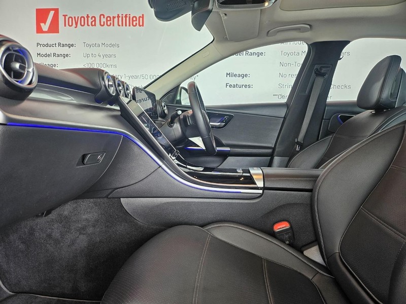 Powered by a 204 Hp petrol engine with EQ Boost technology, the C200 delivers smooth automatic shifting via a 9G-TRONIC transmission. Its fuel efficiency of just 6.6 L/100km ensures economical driving. The sedan comfortably seats five passengers across four doors, providing ample space for family or business needs.