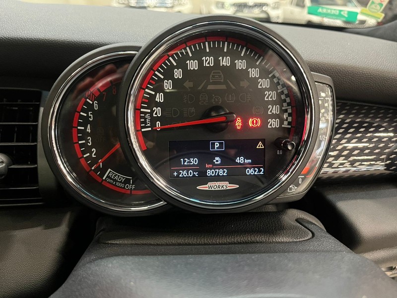 Powered by a 2.0L JCW turbocharged petrol engine with 231 Hp, it features a semi-automatic transmission for seamless gear shifts. With a fuel economy of just 6 L/100km, this compact car is both efficient and practical, accommodating four passengers comfortably with three doors. Its sporty appeal is complemented by modern features suited for everyday driving.