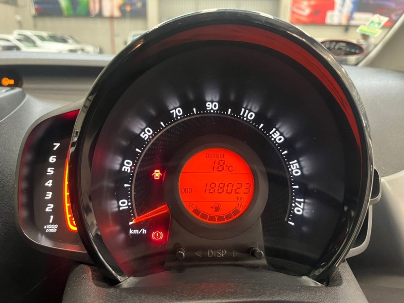 Powered by a fuel-efficient 1.0 VVT-i petrol engine producing 72 Hp, it features a smooth manual transmission ideal for driving enthusiasts. With a remarkable fuel consumption of just 3.7 L/100km, this Aygo is economical for daily commutes. The hatchback has four seats and five doors, providing convenient access and comfortable space for passengers and cargo alike.