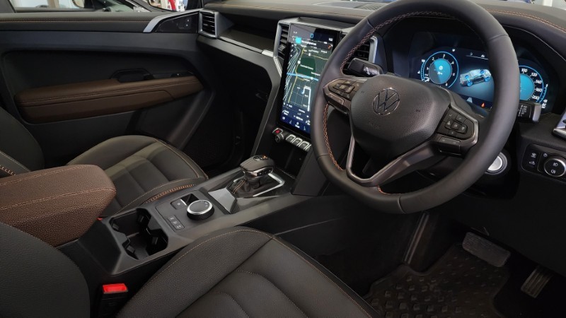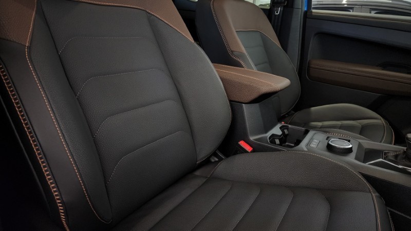 Powered by a robust 2.0 TDI diesel engine producing 205 Hp, the Amarok delivers impressive fuel efficiency with only 8.8 L/100km. The automatic transmission and 4Motion all-wheel drive ensure smooth handling on any terrain. Inside, it comfortably seats five across four doors, making it ideal for family or work use, with practical features for daily driving.
